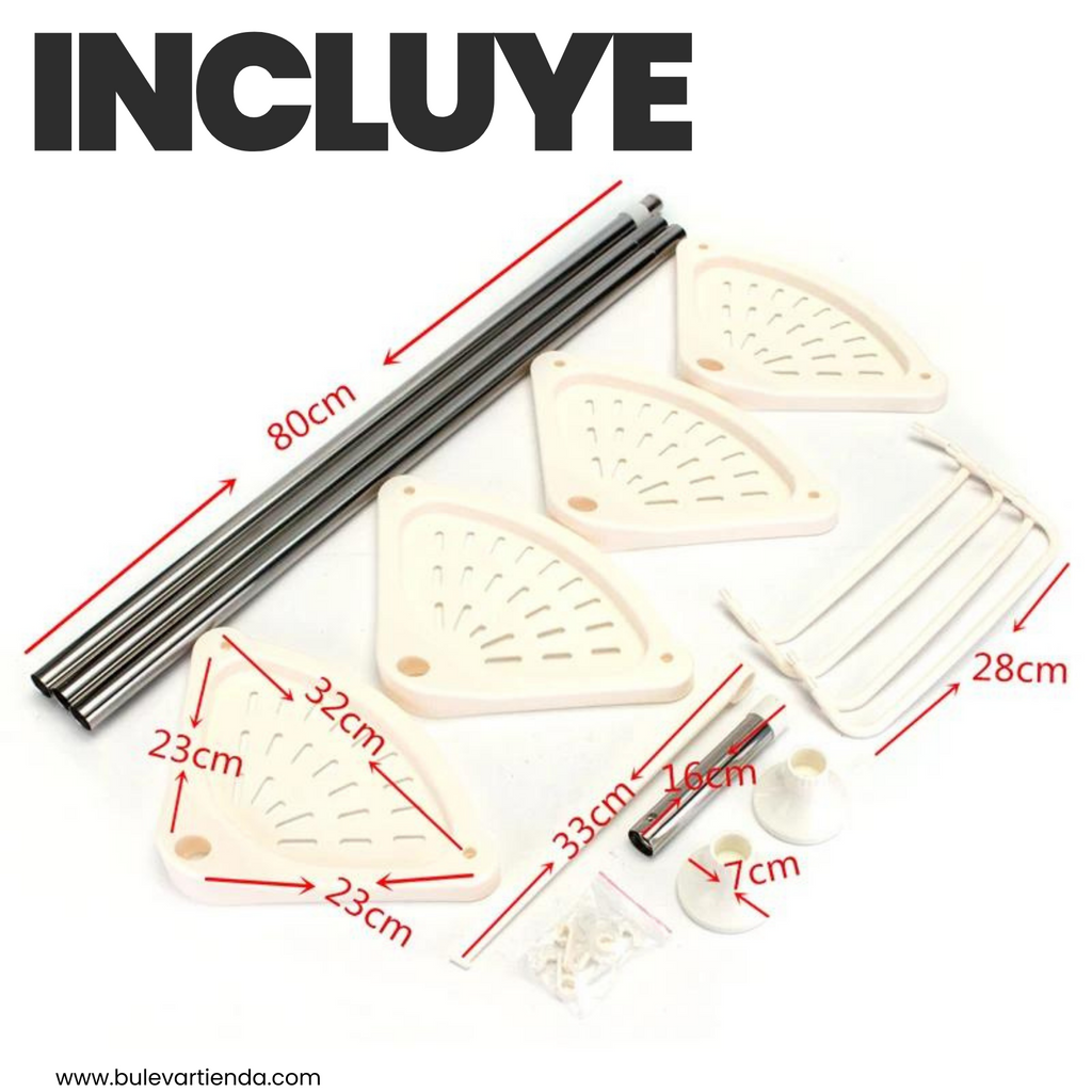 No se necesitan tornillos para la instalación, ya que se fija entre el piso y el techo. Esta característica facilita su montaje y desmontaje, lo que resulta útil si se desea reubicar o retirar el organizador en algún momento sin dejar marcas en las paredes.