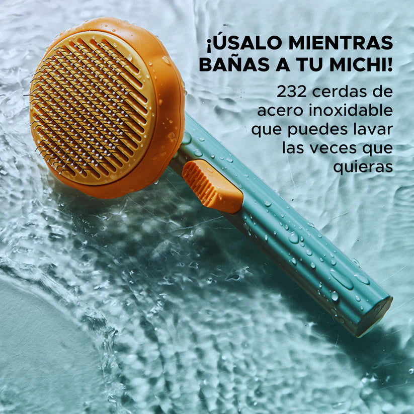 Las 232 cerdas curvas de 140° hacen mucho más fácil recoger el pelo de todos los tipos de Michis, comparada con la clásica cerda lisa.